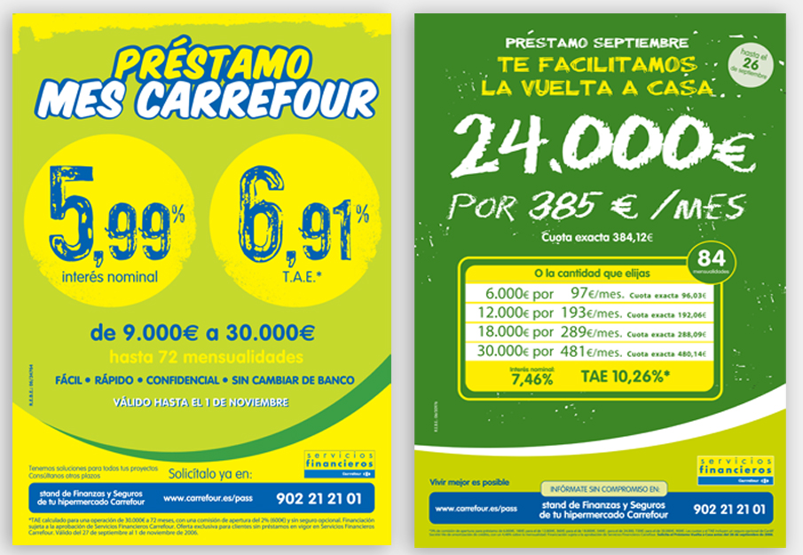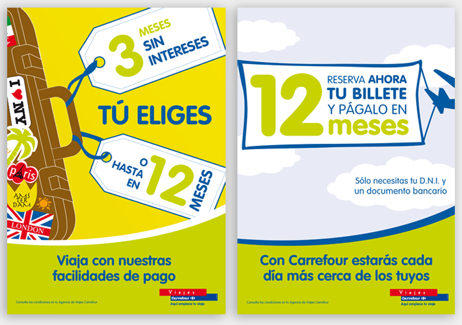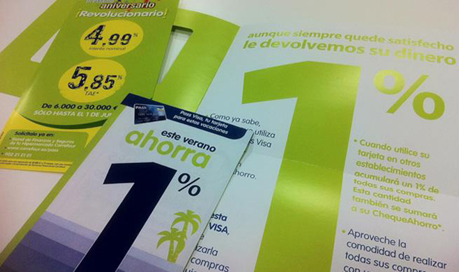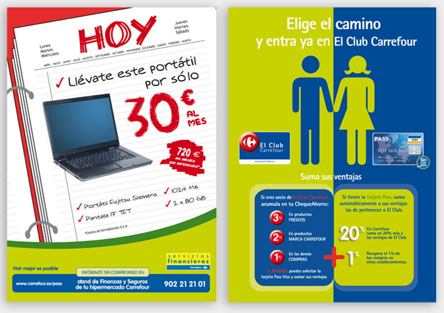 Aplicaciones, desarrollo y diseño de cartelería y folletos para Tarjeta Visa Pass, dentro de la línea de negocio de Servicios Financieros Carrefour
