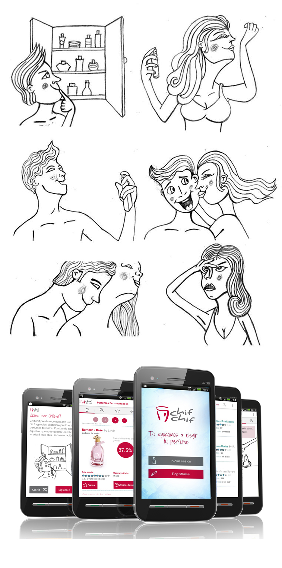 Ilustraciones para la web y app que recomienda perfumes en base a la puntuación otorgada por los usuarios. Compara las esencias, acuerdos, familias y opiniones de sus seguidores con una extensa base de datos para encontrar las fragancias más acorde.