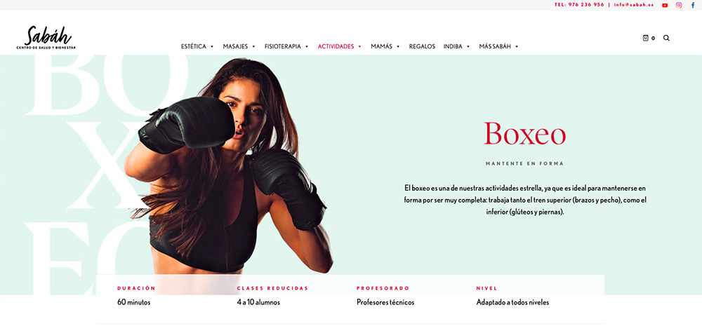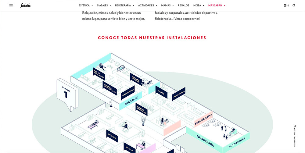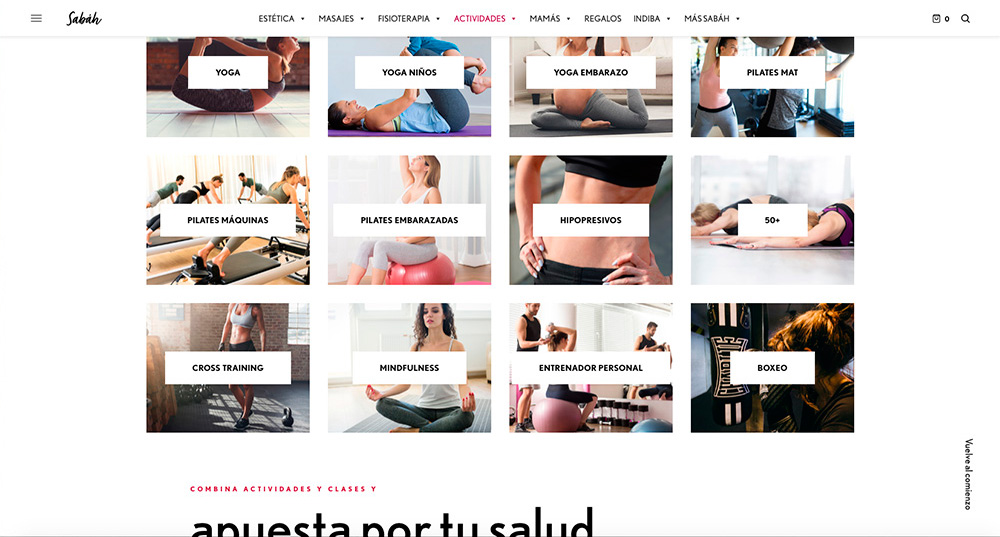 Dada su amplia oferta de clases y servicios, (Masajes relajantes, estética, tratamientos faciales y corporales, actividades deportivas, fisioterapia) era de gran importancia que toda la oferta quedara ordenada, fuera accesible y gozara del mismo protagonismo.